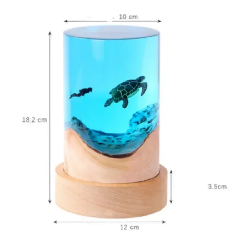 Dekoracja biurkowa, żółw morski, lampka nocna z drewna i żywicy